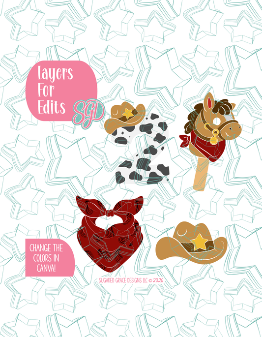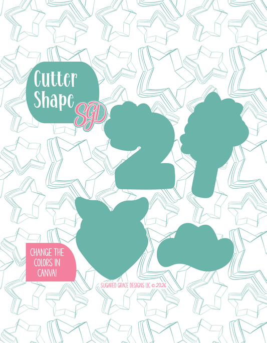 Rootin Twotin Birthday Cookie Cutter set with matching PNG - Set of 4 Designs