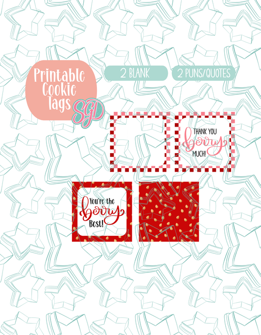 01/26 Monthly Batch - featuring 4 Cookie Cutter STL designs, 2 Cookie Tags, & 2 Printable Patterns - Strawberry Market