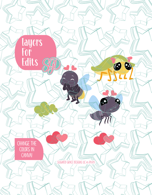 Love Bug Set of 6 Designs for Edible Ink Printers - Hand Drawn Editable Graphics (Digital Download)