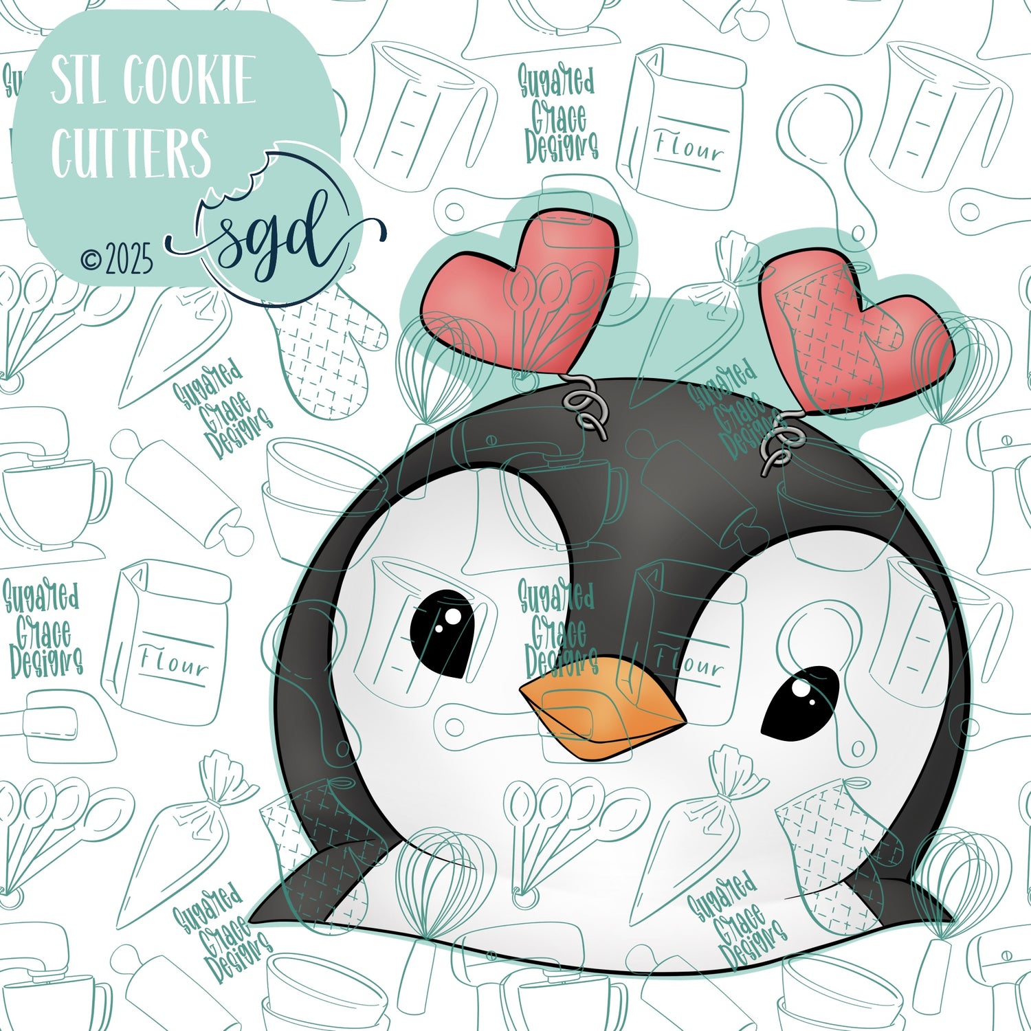 Valentines Day Penguin Cookie Cutter with PNG Images to Match - Hand Drawn Graphics for Edible Ink Printers