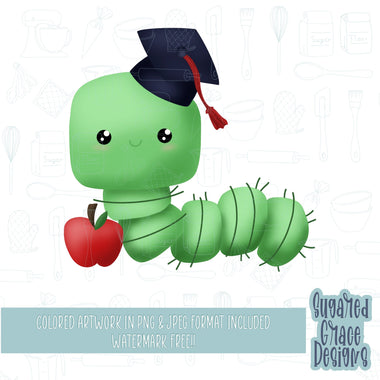 Bookworm Graduate cookie cutter with png images for edible printers including Eddie
