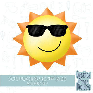 Cool Sun Cookie cutter STL file for 3D printing with png printable instant download for EDDIE edible ink printer, sun with sunglasses image