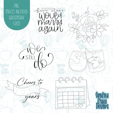Anniversary set Cookie cutter stl files for 3d printing, printable png images for Eddie edible printers