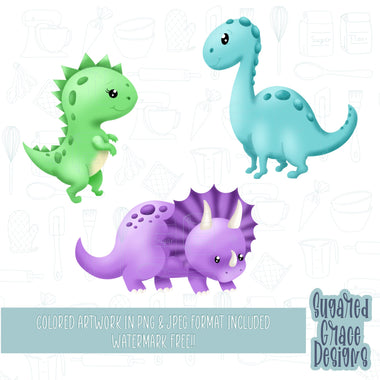 Dinosaur Print Cookie Cutter with PNG Images to Match - Hand Drawn Graphics for Edible Ink Printers