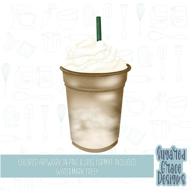 Iced Pumpkin Spice Latte Cookie Cutter with PNG Images to Match - Hand Drawn Graphics for Edible Ink Printers