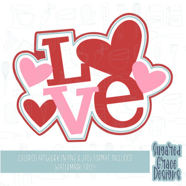 Love Letter With Hearts Cookie Cutter with Matching Stamp For Fondant Decorating