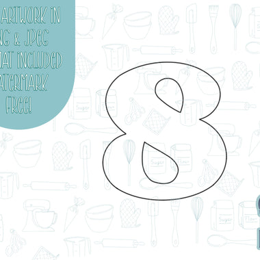 Number eight Cookie cutter stl, png image file, 3D printing, instant download, Eddie edible ink printer, simple number cookie cutter stl