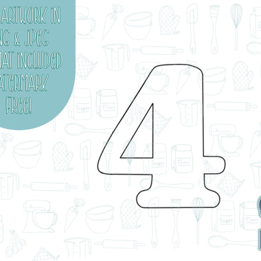 Number four Cookie cutter stl, png image file, 3D printing, instant download, Eddie edible ink printer, simple number cookie cutter stl