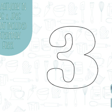 Number three Cookie cutter stl, png image file, 3D printing, instant download, Eddie edible ink printer, simple number cookie cutter stl