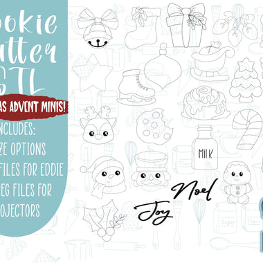 Christmas advent set of 24 Cookie cutter STL file for 3D printing with png printable instant download for EDDIE edible ink printer, mini stl