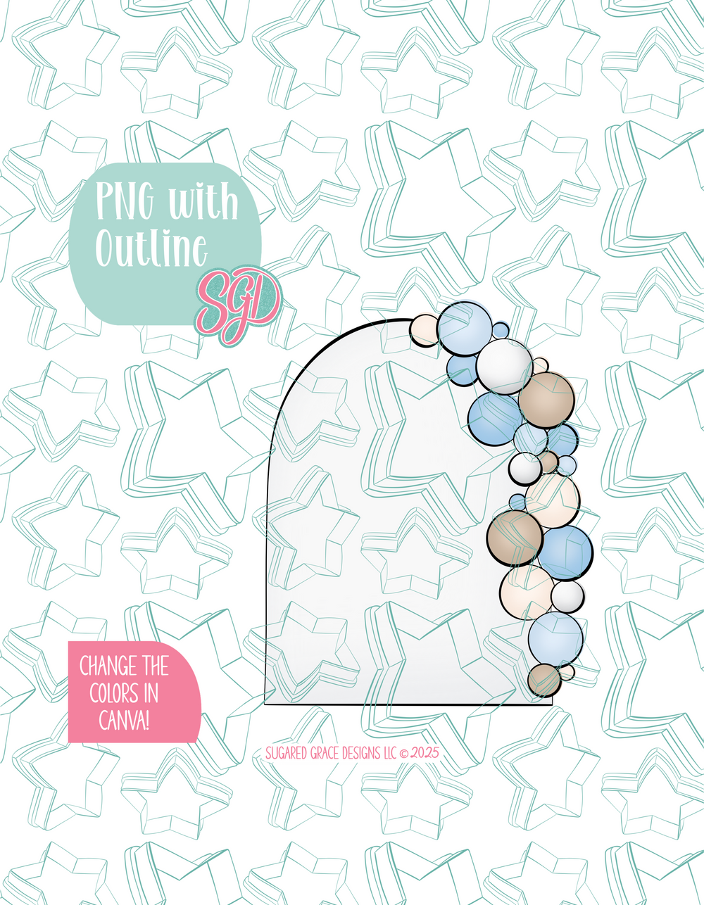 Bring the beary sweetest vibes to your celebration with this balloon arch plaque design. The featured version reads “We can Bearly wait,” perfect for trendy teddy bear baby showers and gender reveals. You’ll also get a blank plaque PNG so you can add any quote to match your theme (welcome sign, name, date, scripture… you name it!) The soft blue, beige, and ivory balloons deliver that modern boho look that’s all over Pinterest right now and the layered PNG makes it a breeze to use with a projector or edible ink printer for crisp, professional results. From baby showers to baptisms and first birthdays, this versatile arch becomes an instant backdrop that ties your dessert table together.