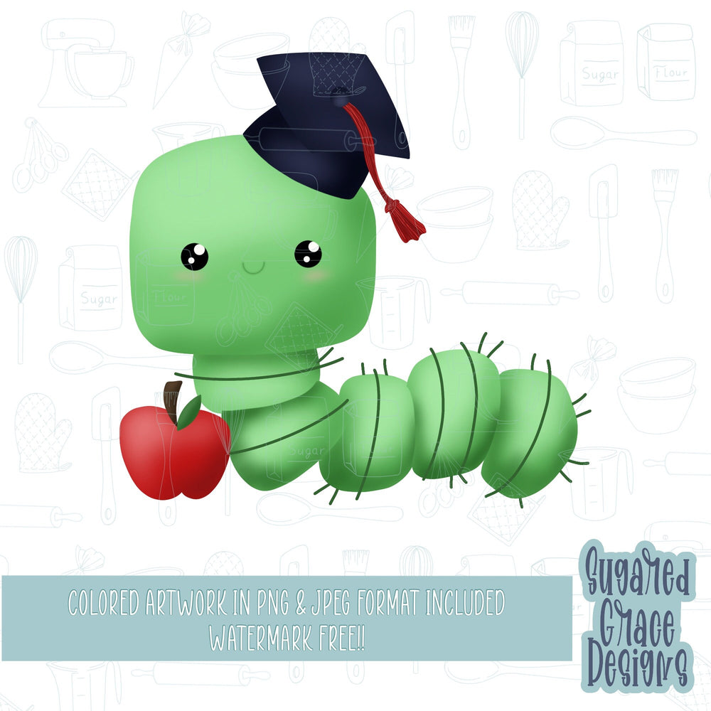 Bookworm graduate cookie cutter stl file for 3D printing and 3D printer, graduation cookie cutter gift for grad, graduation png for Eddie