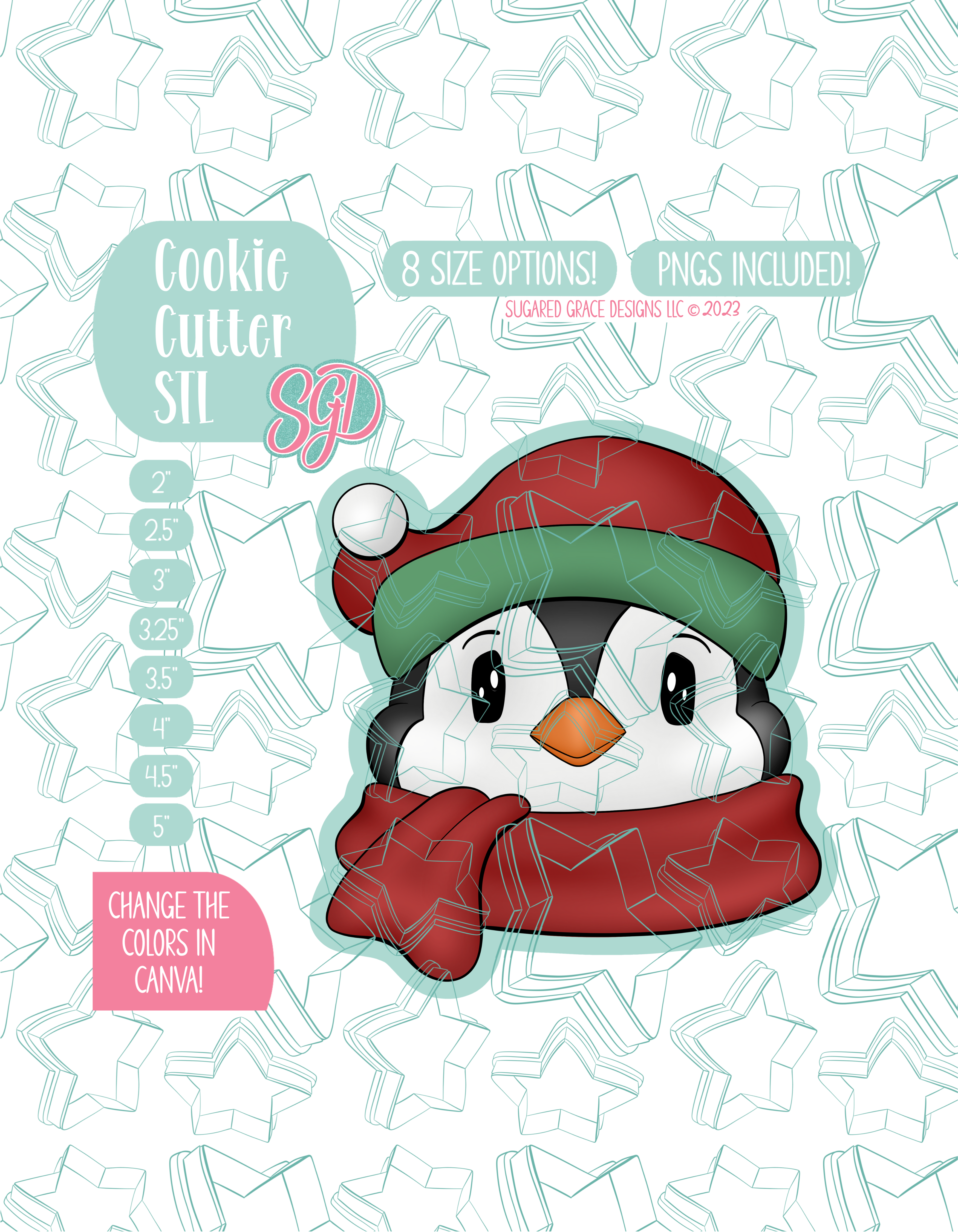 Christmas Penguin Cookie Cutter STL File with PNG Images to Match - For 3D Printing and Edible Ink Printers