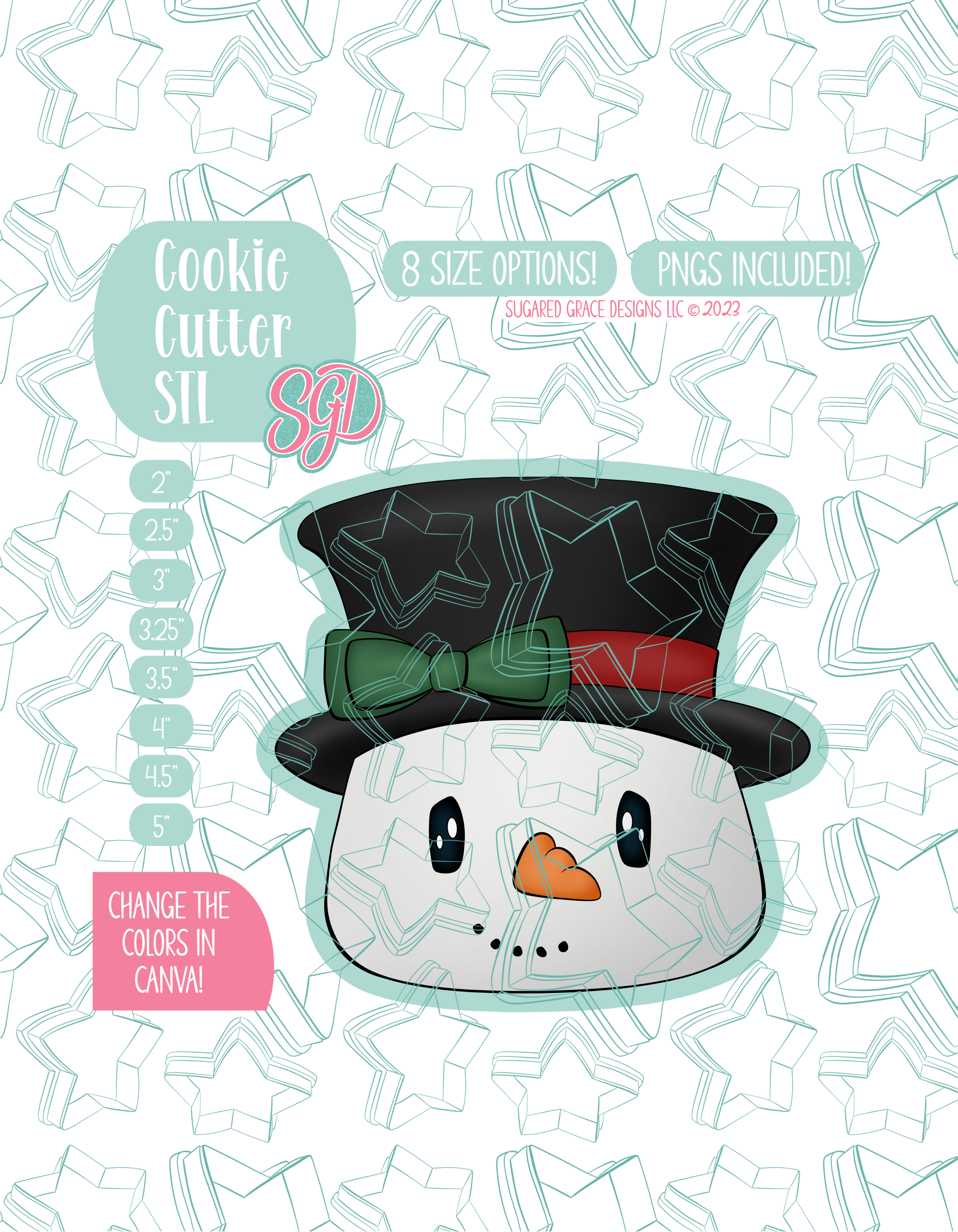 This dapper snowman in his festive top hat and bow brings classic holiday charm to your cookie trays! Designed for easy decorating and sturdy cookies, this STL and PNG set makes it simple to create timeless frosty faces for your Christmas pre sales, holiday markets, or snow day baking with family. Whether you keep him traditional with red and green or add your own colorful spin, this snowman is sure to be a nostalgic favorite that delights kids and grown ups alike!