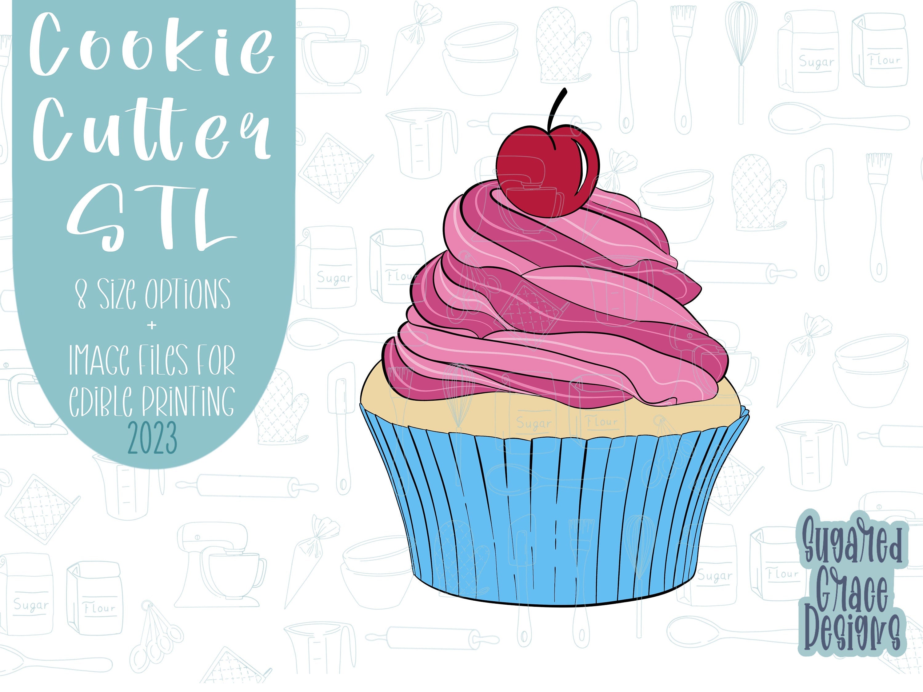 Comic style cupcake Cookie cutter stl, png image file, 3D printing, instant download, Eddie edible ink printer, comic cookie, comic cake,