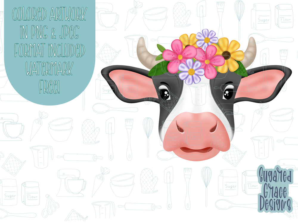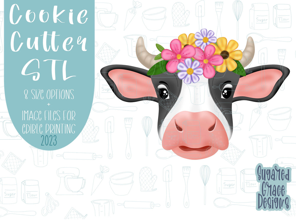 Floral cow cookie cutter stl file for 3d printing with png instant download printable for Eddie edible ink printer image file, mother heifer