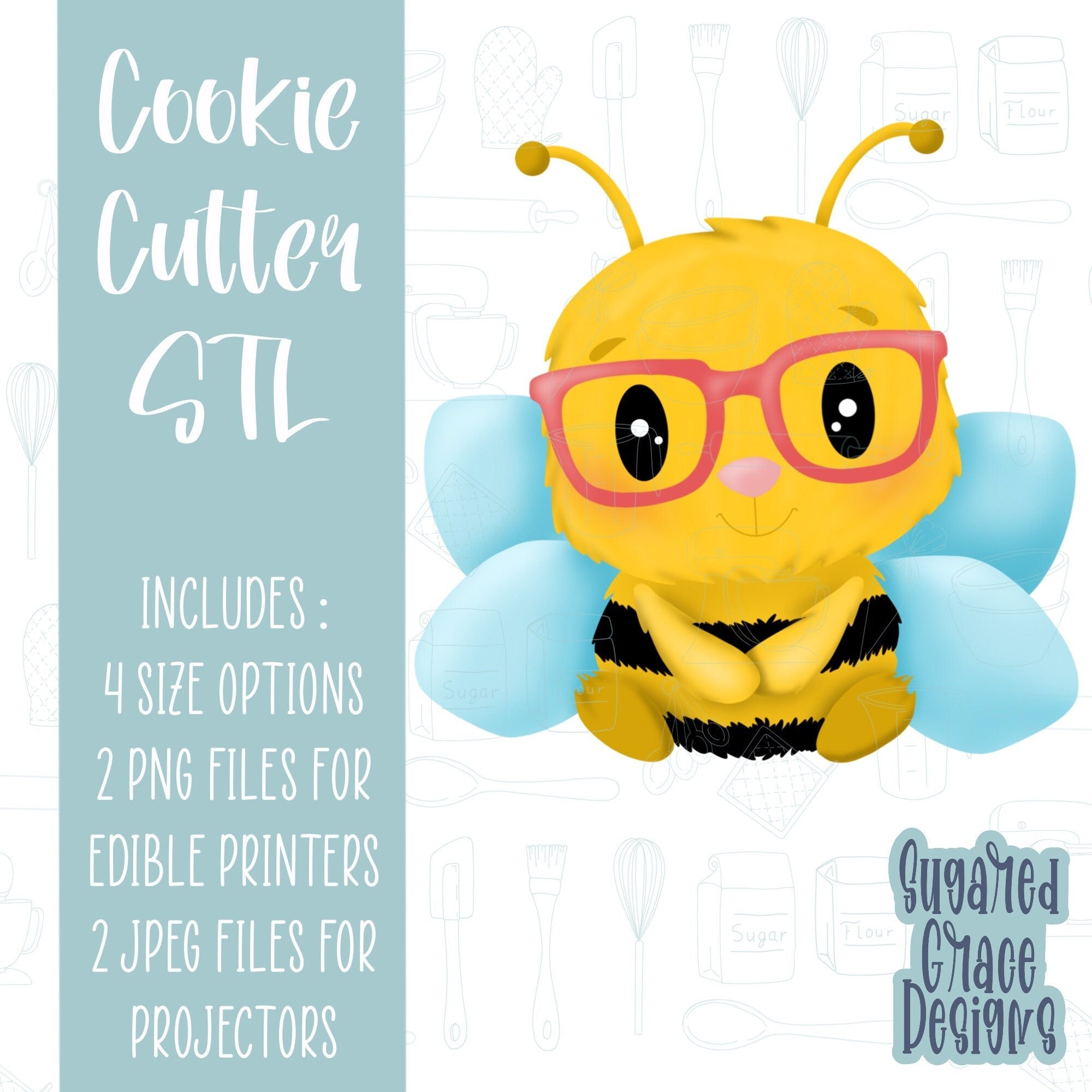 honey bee with glasses Cookie cutter STL file for 3D printing with png printable instant download for EDDIE edible ink printer, bumblebee,