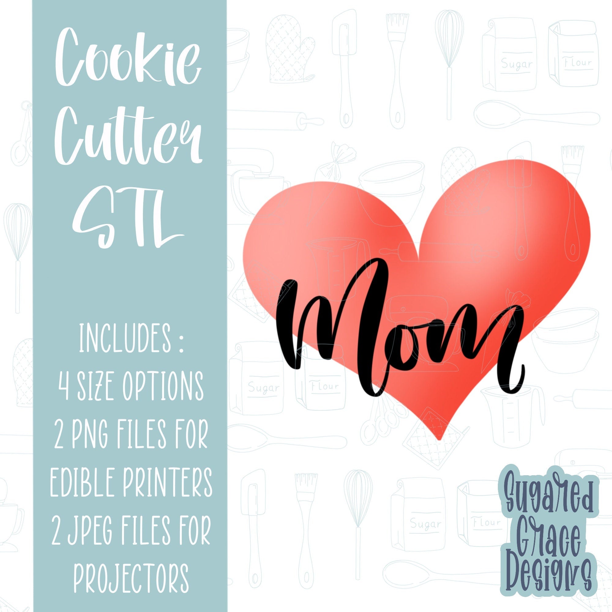 lettered mom heart Cookie cutter stl files for 3d printing with matching printable png images for Eddie edible printers