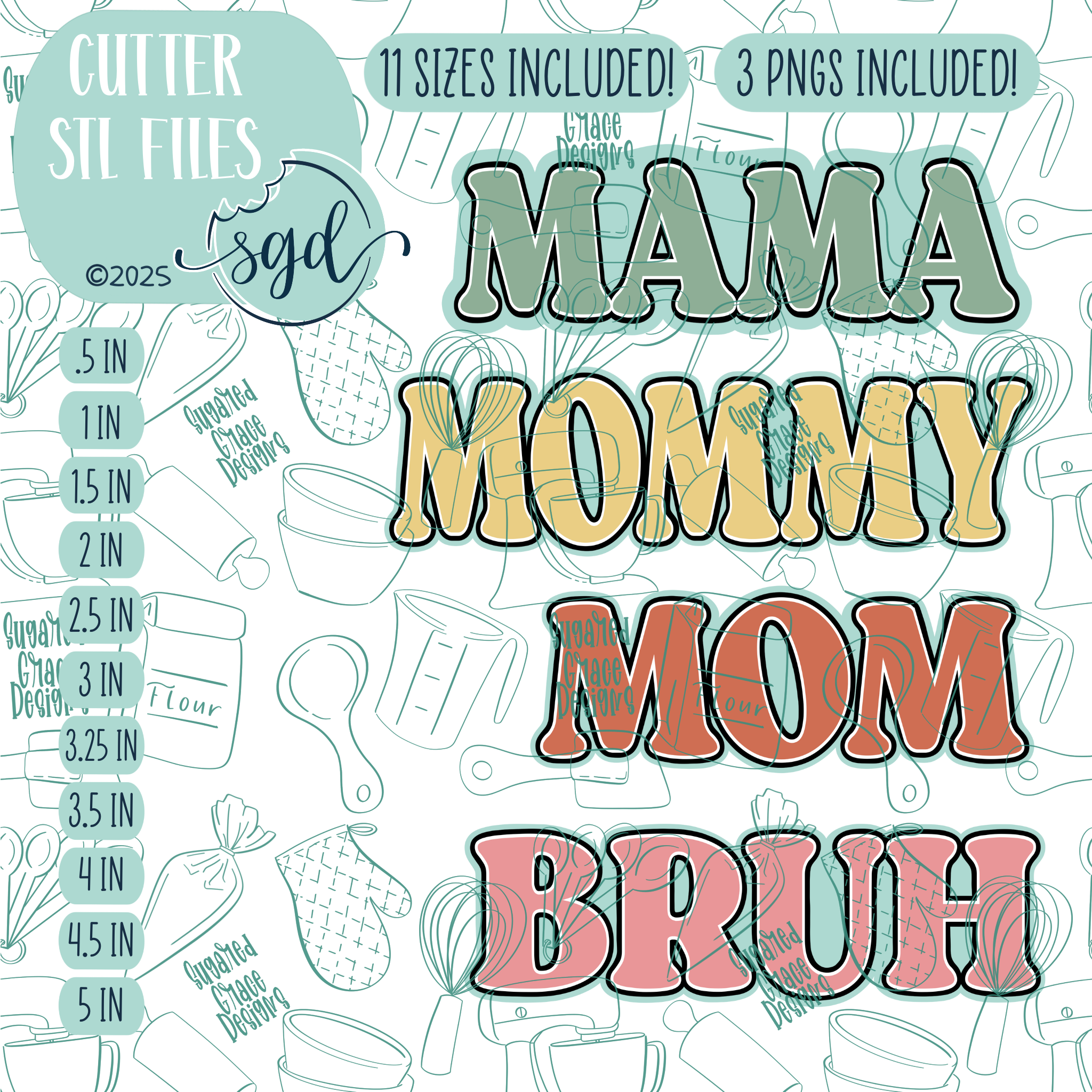 ⭐️4 Designs: Word Sticks: Mama, Mommy, Mom, and Bruh