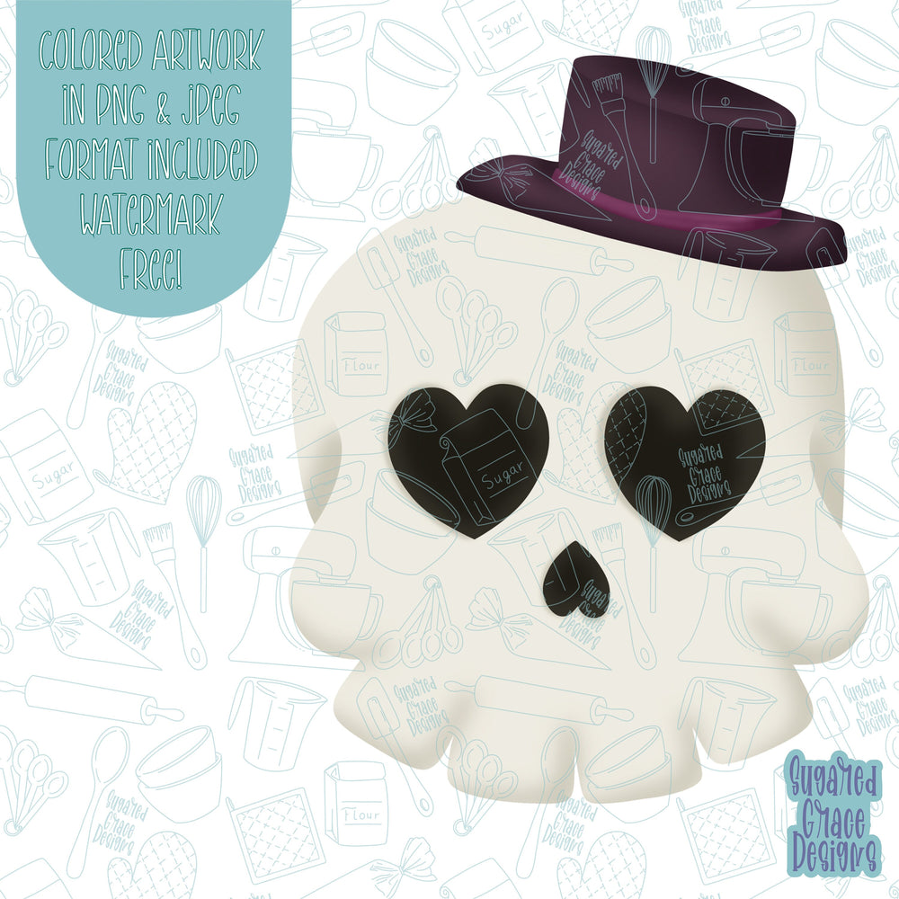 Mr skull with hat Cookie cutter stl files for 3d printing with matching printable png images for Eddie edible printers