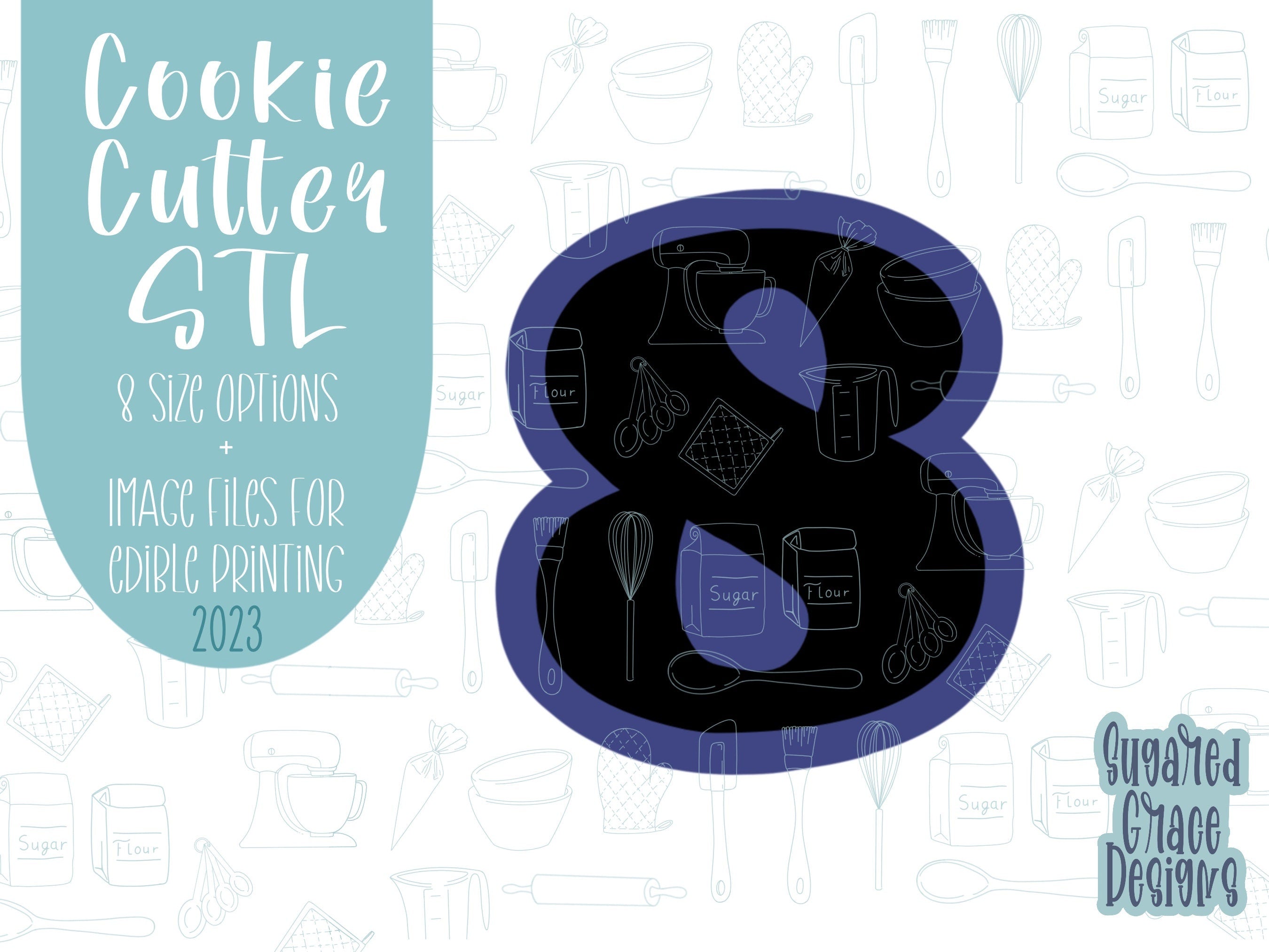 Number eight Cookie cutter stl, png image file, 3D printing, instant download, Eddie edible ink printer, simple number cookie cutter stl