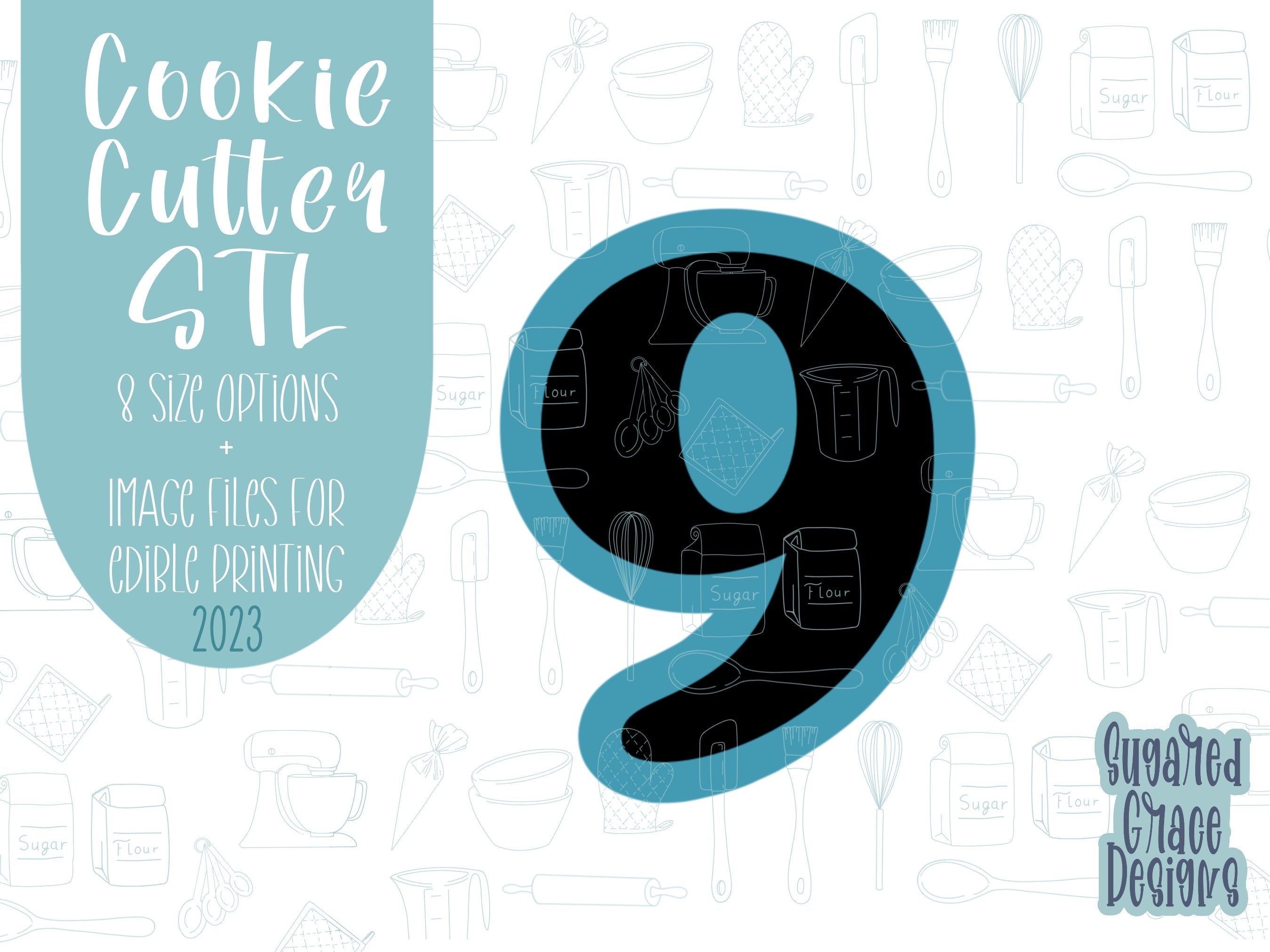 Number nine Cookie cutter stl, png image file, 3D printing, instant download, Eddie edible ink printer, simple number cookie cutter stl