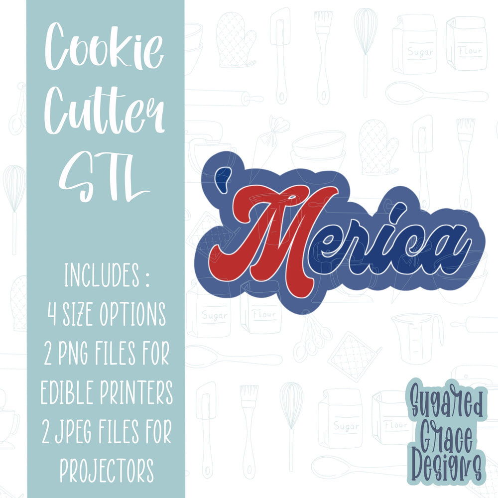 Patriotic lettered ‘Merica Cookie cutter STL file for 3D printing with png printable instant download for EDDIE edible ink printer