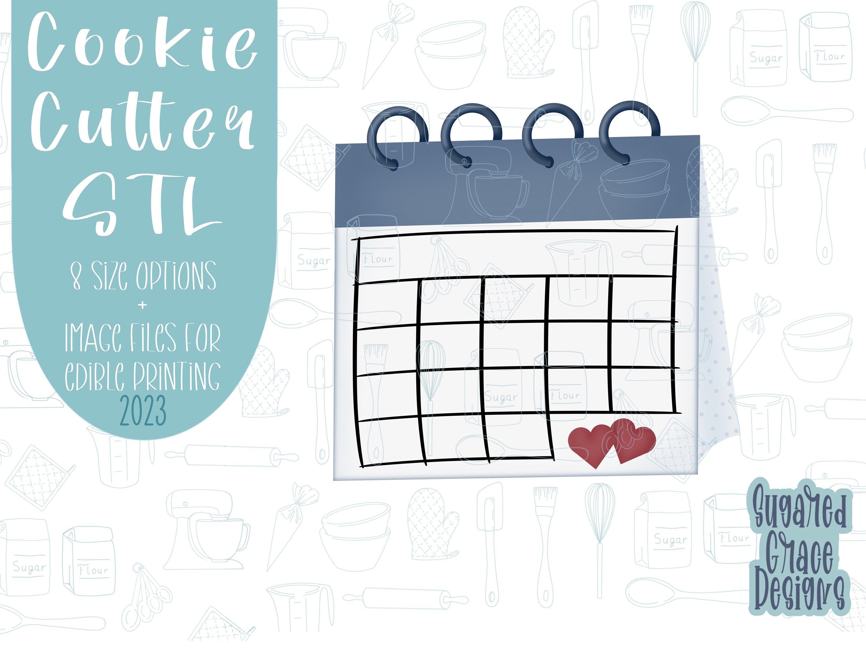Save the date Cookie cutter stl files for 3d printing, printable calendar png images for Eddie edible printers