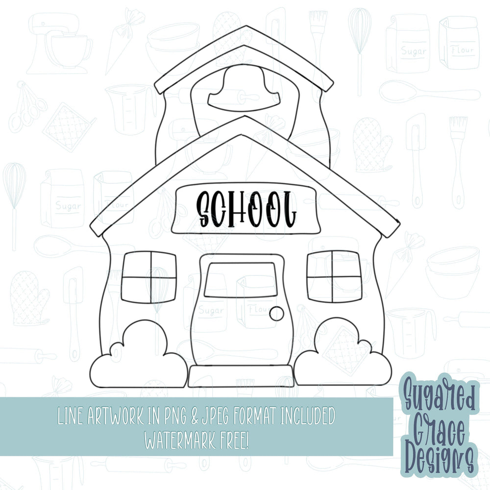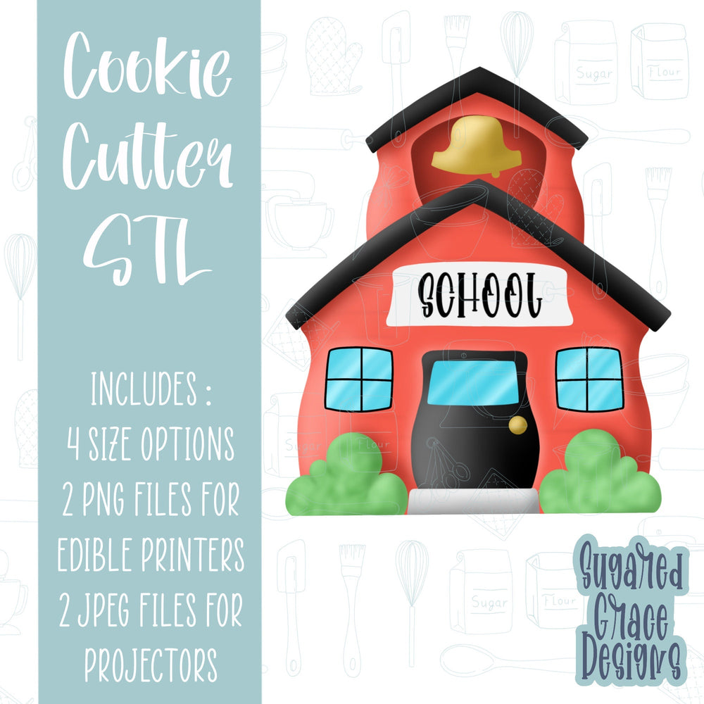 School house Cookie cutter STL file for 3D printing with png printable instant download for EDDIE edible ink printer, back to school teacher