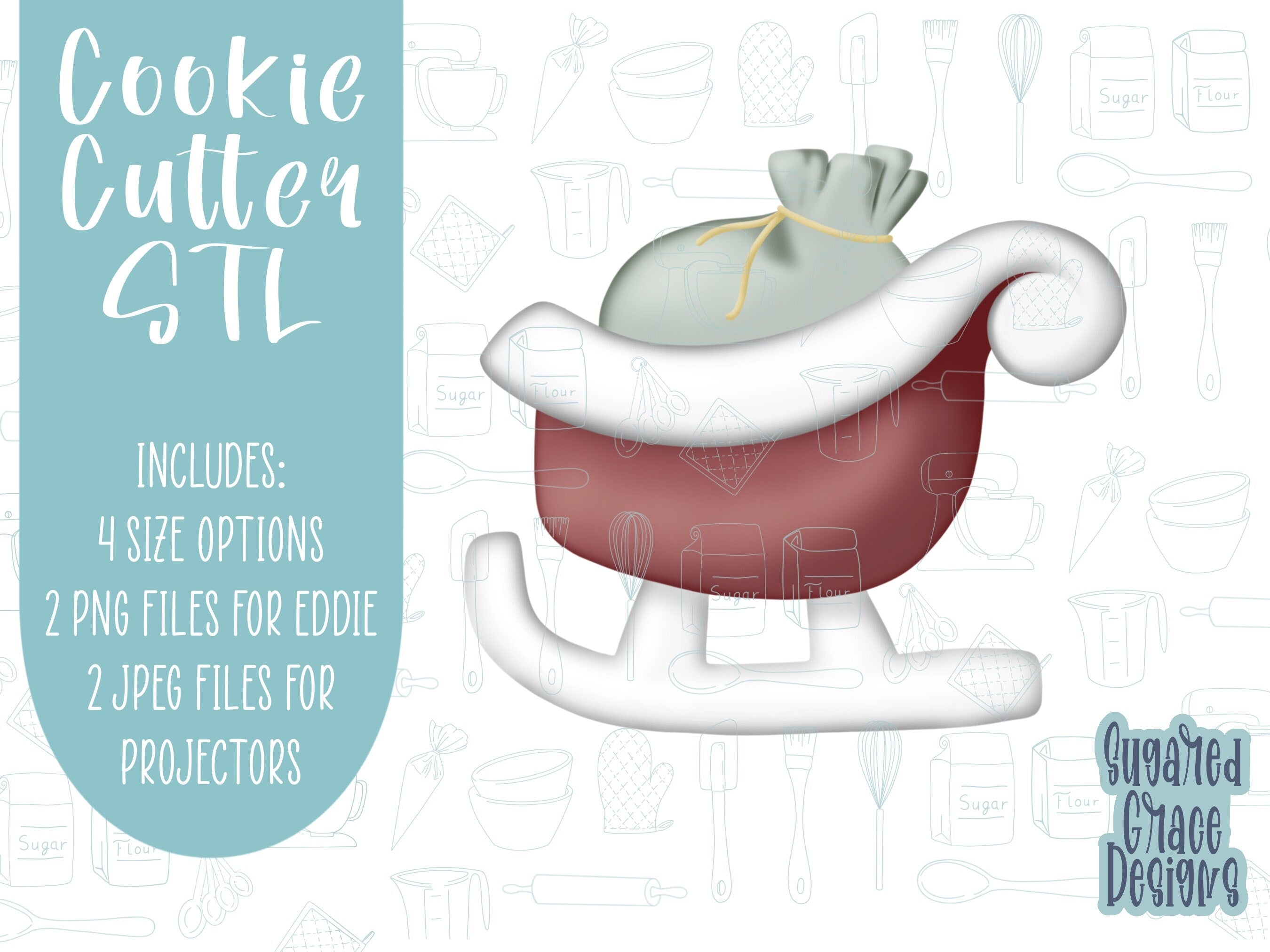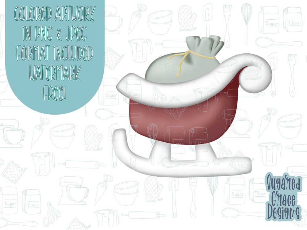 sleigh Cookie cutter STL file for 3D printing with png printable instant download for EDDIE edible ink printer, Christmas cookie cutter