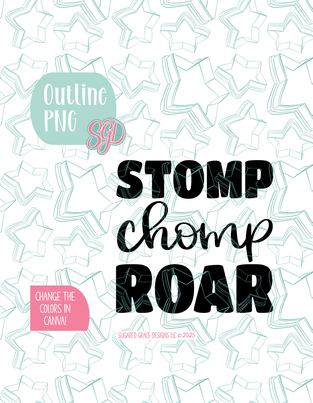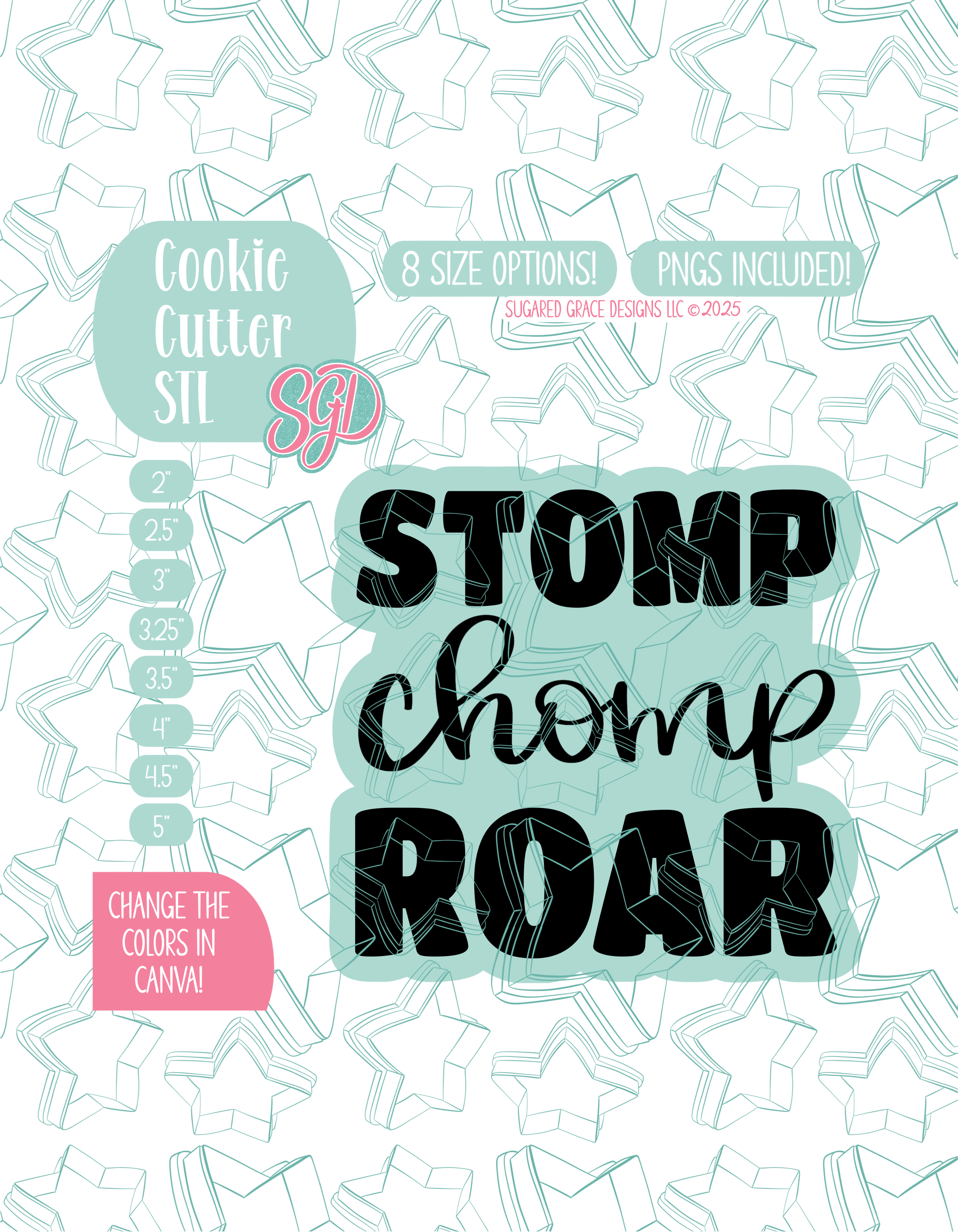 Stomp Chomp Roar Cookie Cutter STL File with PNG Images to Match - For 3D Printing and Edible Ink Printers