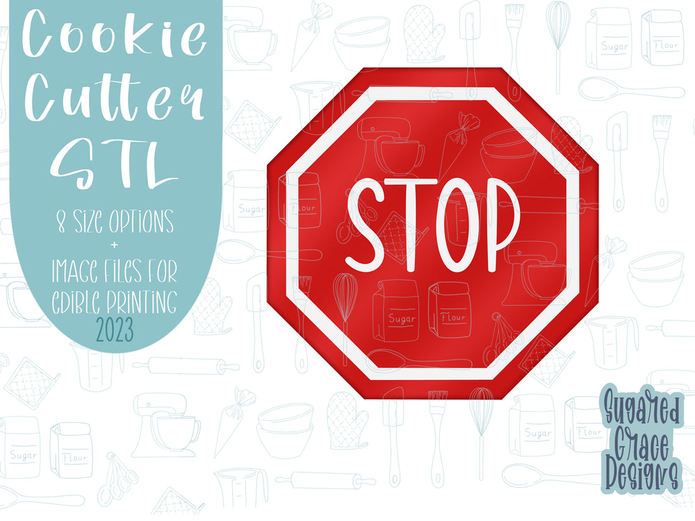 Stop sign cookie cutter stl file for 3D printing with png printable instant download for Eddie the edible printer, road construction cookie