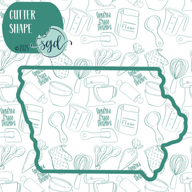 Iowa State Cookie Cutter with PNG Images to Match - Hand Drawn Graphics for Edible Ink Printers - United States Shape