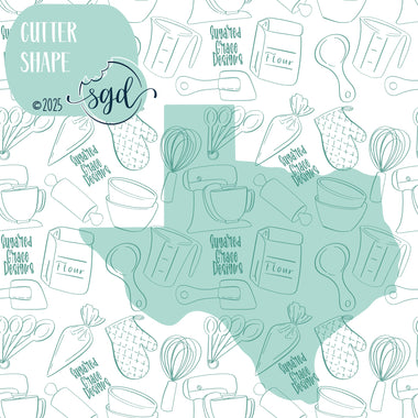 Texas State Cookie Cutter with PNG Images to Match - Hand Drawn Graphics for Edible Ink Printers - United States Shape