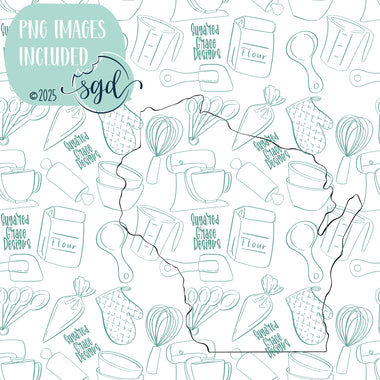 Wisconsin State Cookie Cutter with PNG Images to Match - Hand Drawn Graphics for Edible Ink Printers - United States Shape