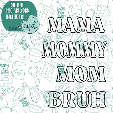 Mom to Bruh Cookie Cutter with PNG Images to Match - Hand Drawn Graphics for Edible Ink Printers