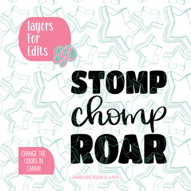 Stomp Chomp Roar PNG Image Set for Edible Ink Printers - Hand Drawn Editable Graphics
