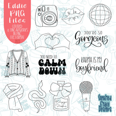 Hand Drawn Back To School PNG Image Set for Edible Ink Printers Including Eddie and line art for High Quality PYO Cookie Kits