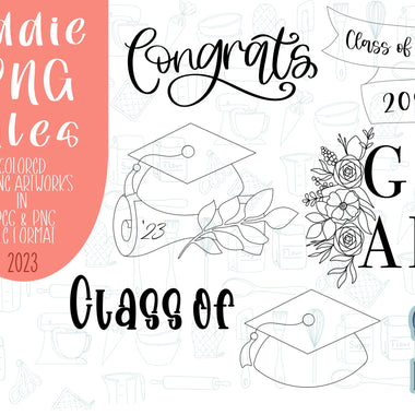 Graduation png graphic bundle set for Eddie edible printer, congrats grad image, floral grad cap, banner plaque royal icing image