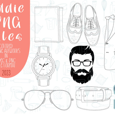Masculine Father’s Day png graphic bundle set for Eddie edible printer, groomsman royal icing image, wedding attire, groom, brown leather