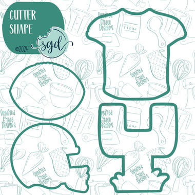 Baby's First Down Football Cookie Cutter STL File Set for 3D Printing with Matching Printable PNG Images for Edible Ink Printers Including Eddie