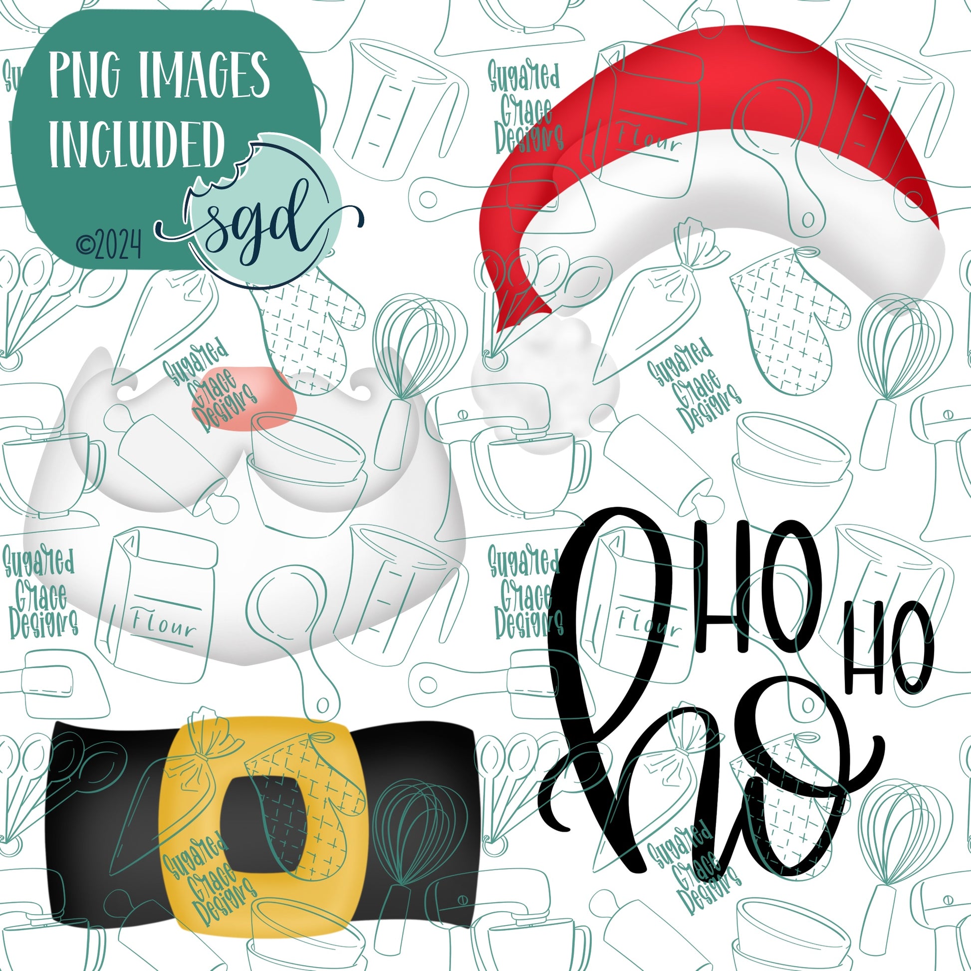 ⭐️4 Designs: Santa Hat, Santa Beard, Santa Belt, Word Plaque (Ho Ho Ho)