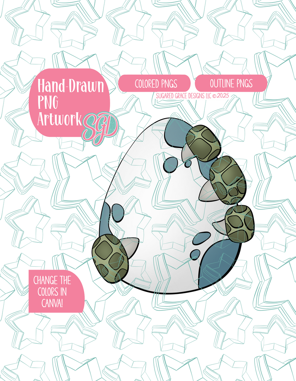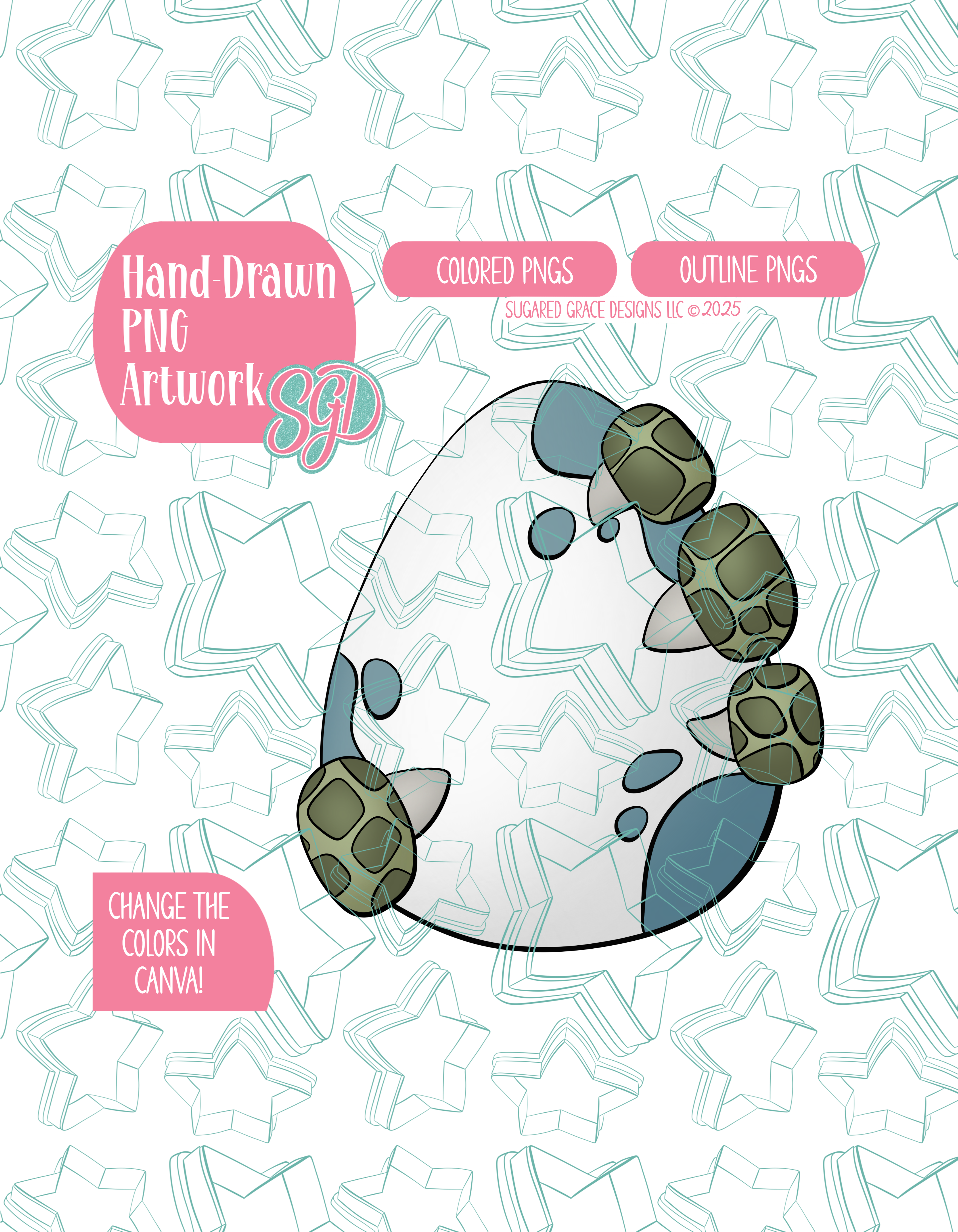 My artwork is hand drawn in 300 dpi for high quality prints. All of my images have a matching cookie cutter that is available for purchase in physical form or STL form!