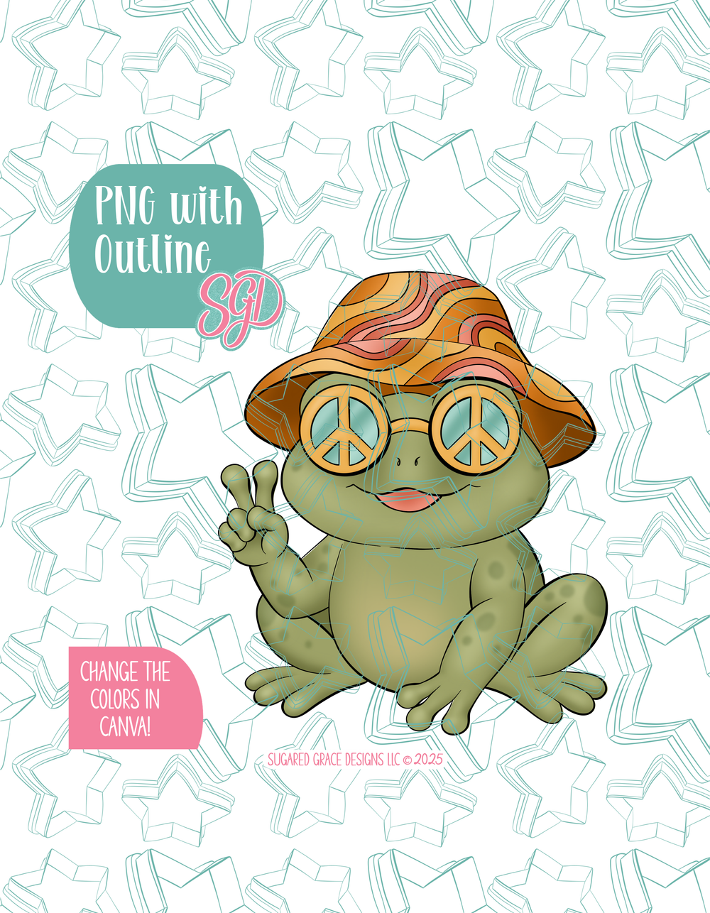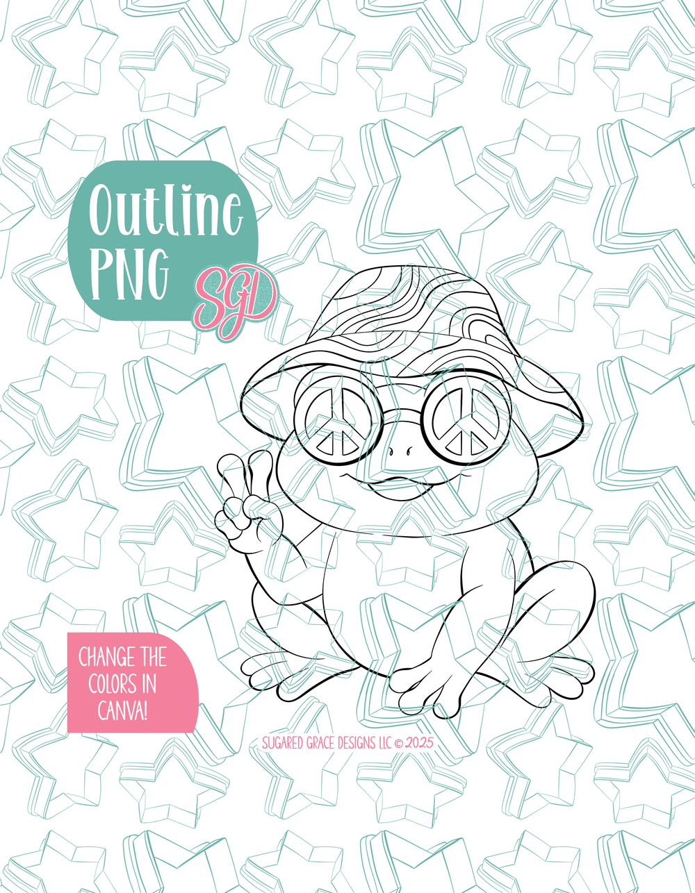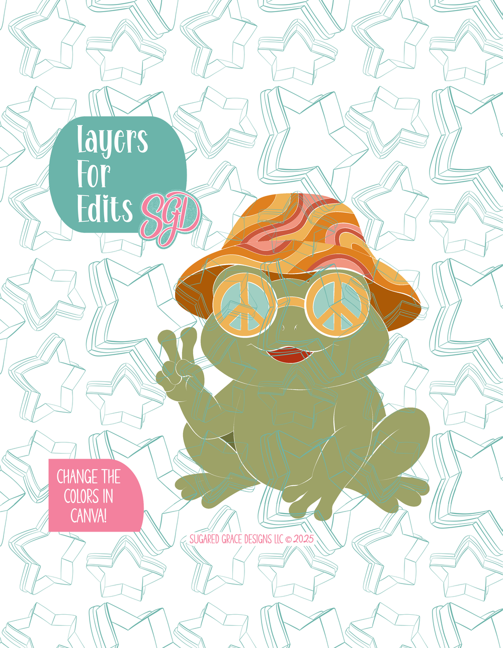 This peace loving groovy frog is ready to hop straight into your next celebration with all the retro charm and wild-child whimsy your party theme deserves! Decked out in his wavy 70s hat and peace-sign glasses, he brings instant personality to boho birthdays, “wild one” parties, woodland-themed sets, and even the ever popular “one groovy baby” shower. His simple shapes and bold details make decorating a breeze; perfect for bakers who want quick, scroll stopping cookies that look like custom party décor with minimal effort. Whether he’s paired with mushrooms and flowers or shining as the star of your Disco Wild Child collection, this funky little frog guarantees smiles, rave reviews, and irresistibly groovy vibes with every batch.