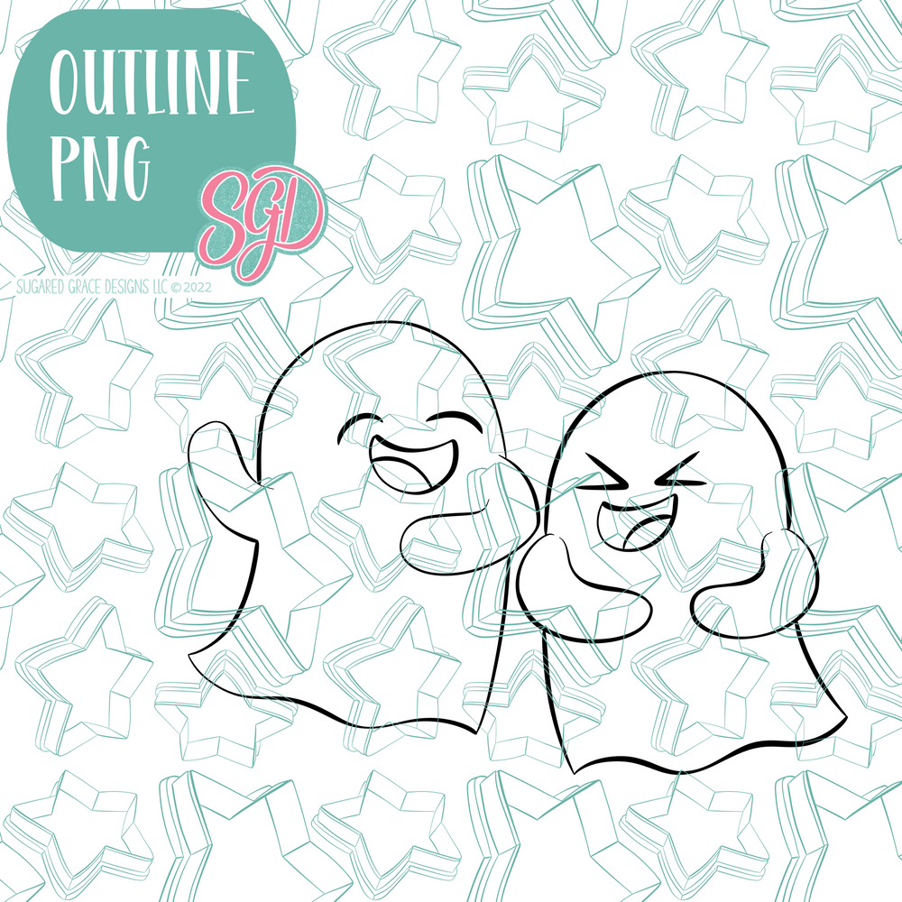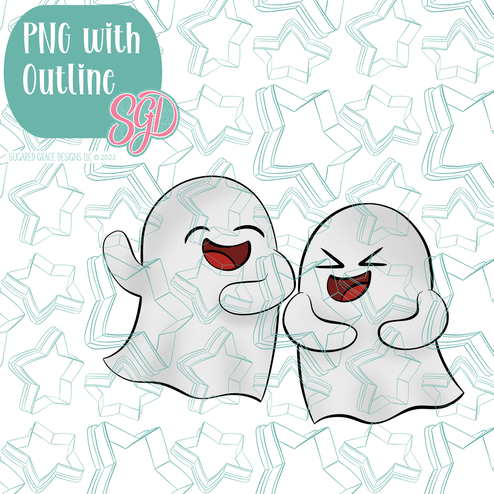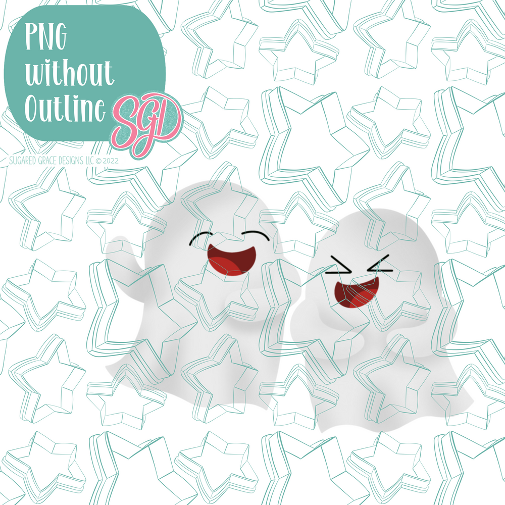 Laughing Ghouls Cookie Cutter with PNG Images to Match - Hand Drawn Graphics for Edible Ink Printers