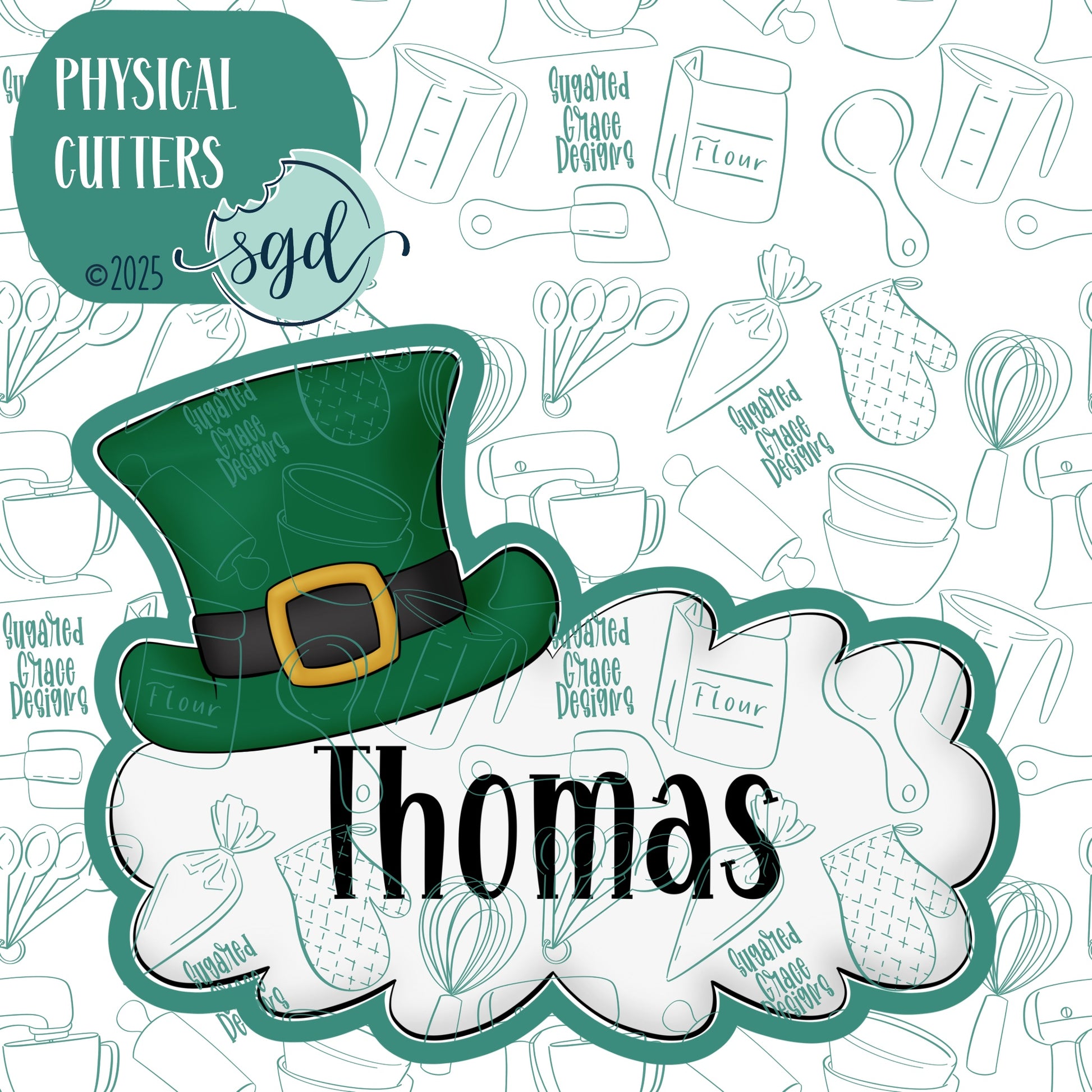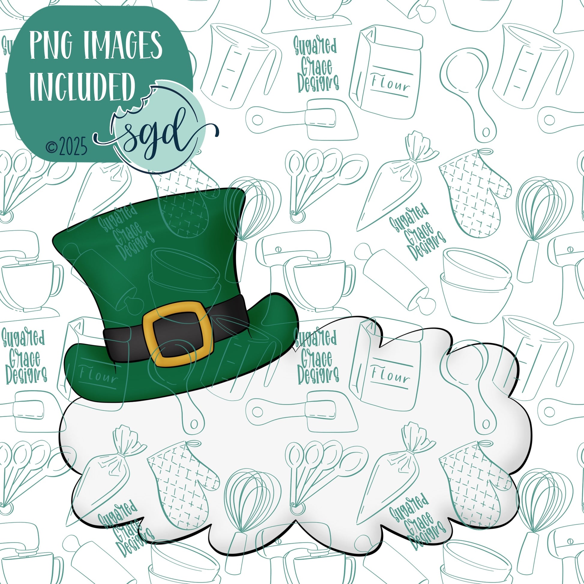 Leprechaun Hat Lacey Plaque Cookie Cutter for St Patrick's Day with PNG Images to Match - Hand Drawn Graphics for Edible Ink Printers