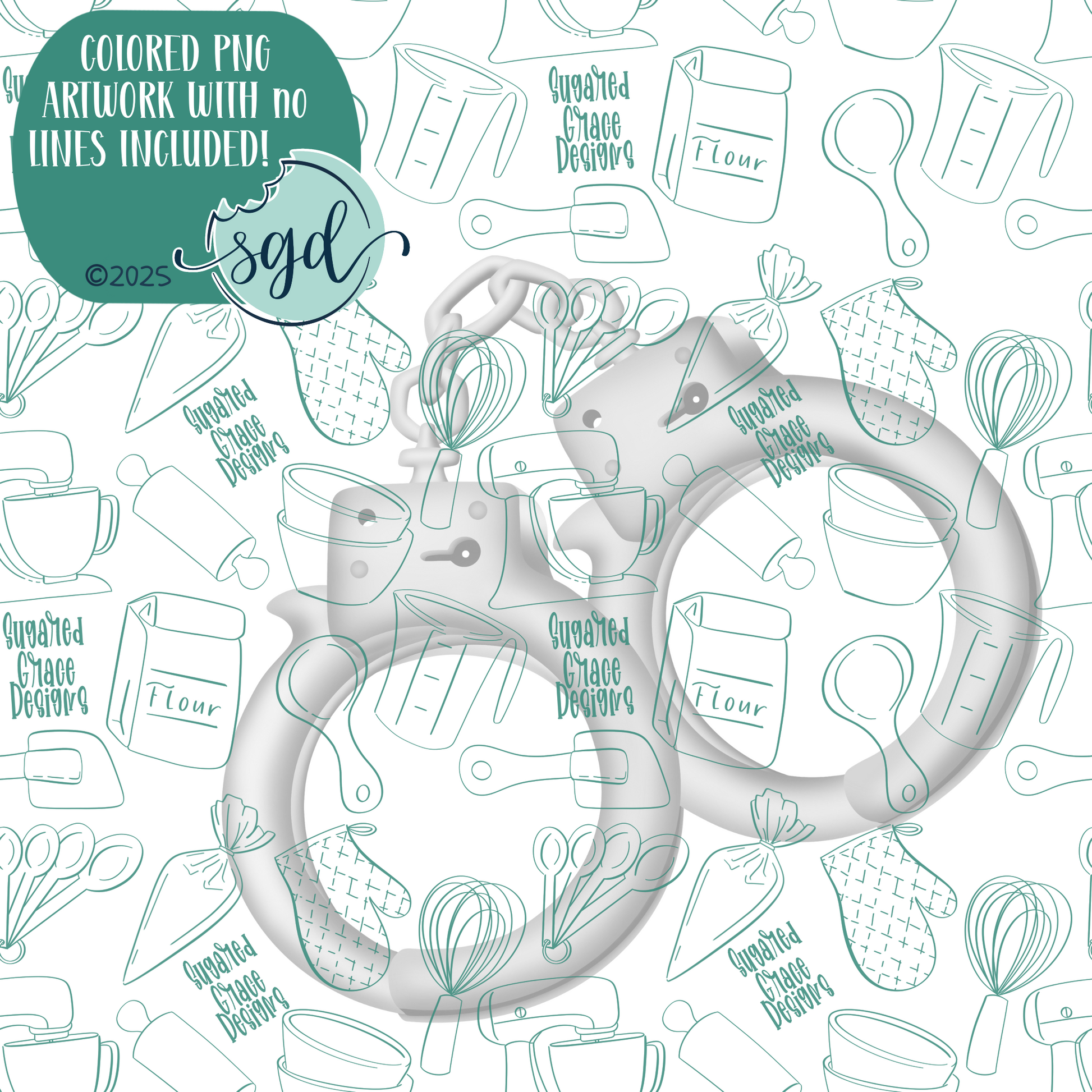 Police Handcuffs Cookie Cutter with PNG Images to Match - Hand Drawn Graphics for Edible Ink Printers