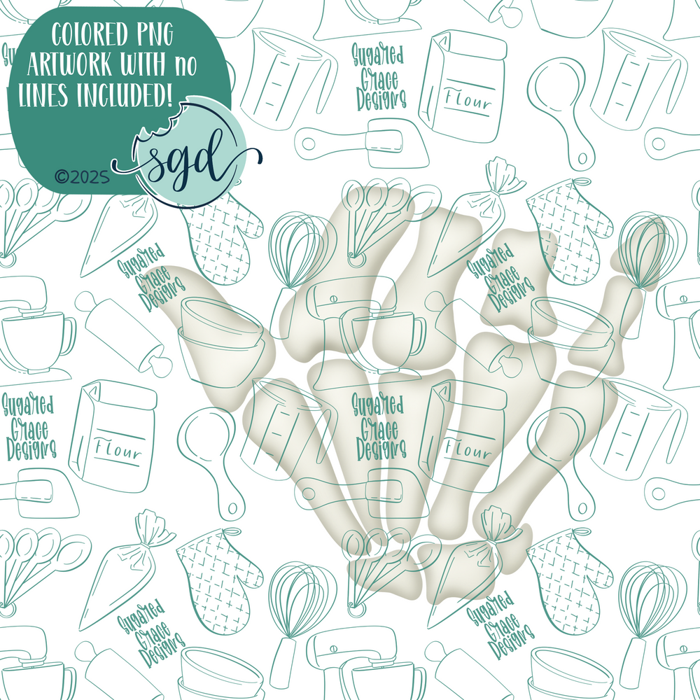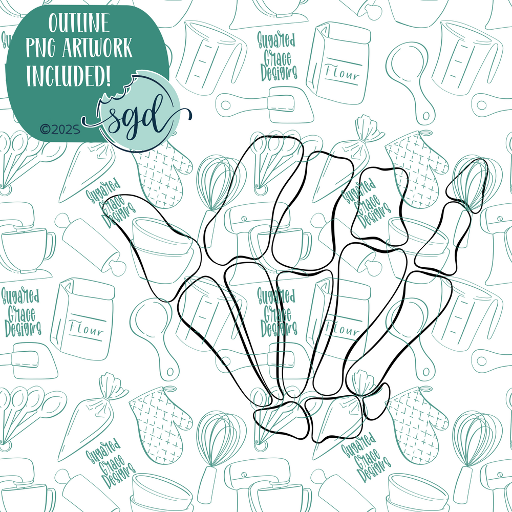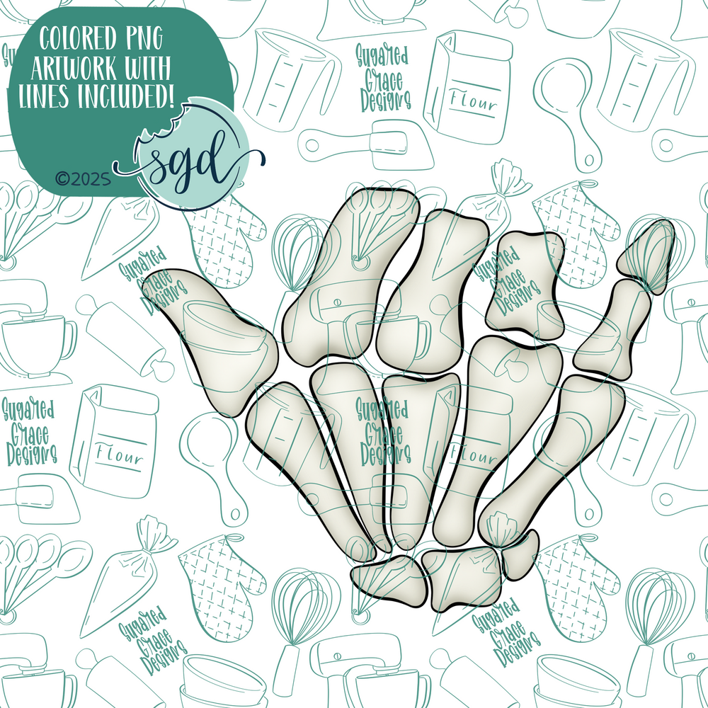 Rock On Bone Hand Cookie Cutter with PNG Images to Match - Hand Drawn Graphics for Edible Ink Printers