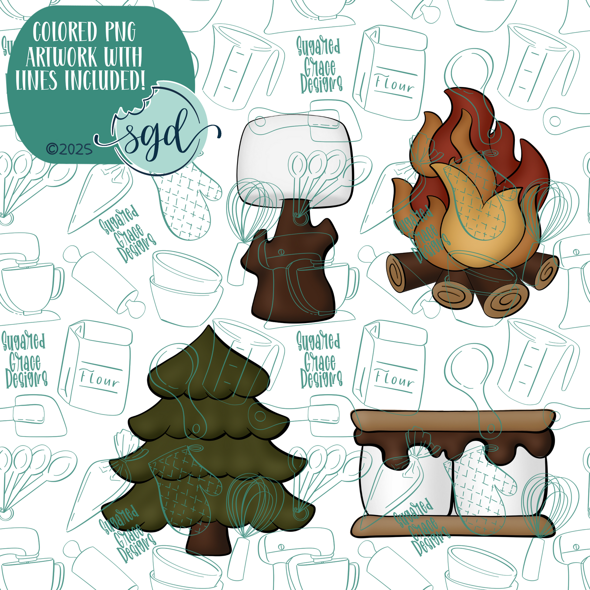 S'more Cookie Cutter Set of 4 with PNG Images to Match - Hand Drawn Graphics for Edible Ink Printers