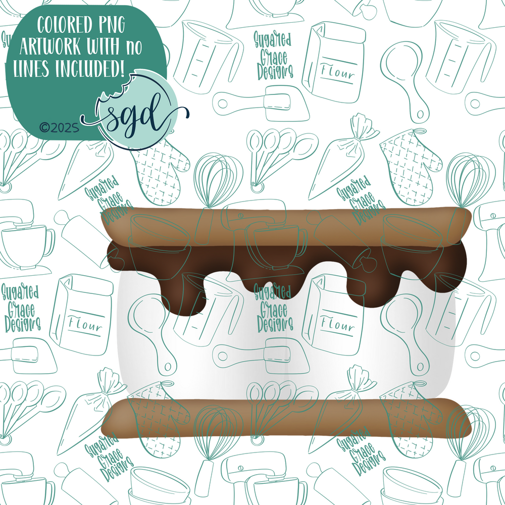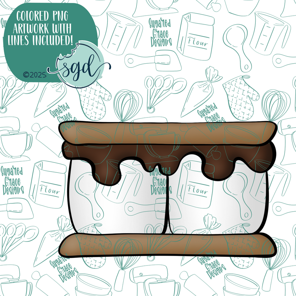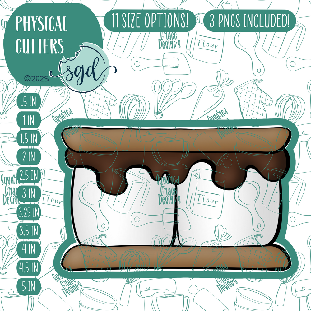 Bring the sweet, toasty goodness of summer nights to your cookie sets with this classic s’more cookie cutter! Featuring stacked graham crackers, gooey marshmallow, and melty chocolate, this design is a cozy favorite for camping themes, summer bakes, and scout party sets.